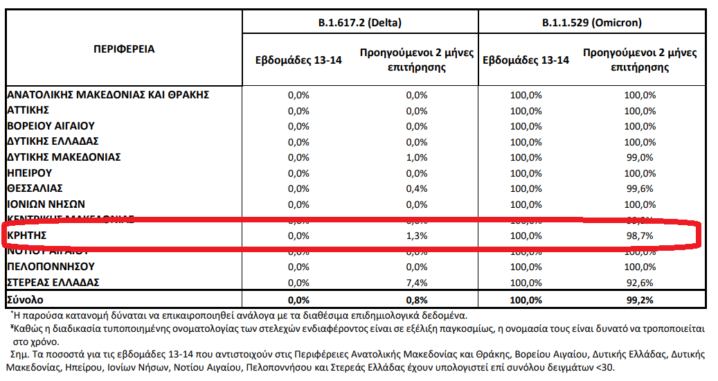 Από τον έλεγχο των 209 δειγμάτων, αναγνωρίστηκαν συνολικά 199 δείγματα με στελέχη ειδικού ενδιαφέροντος (Variants Of Concern - VOC), όλα Omicron (B.1.1.529) (Πίνακας 3). Εκατόν ογδόντα πέντε από τα 199 στελέχη Omicron αφορούσαν στο στέλεχος ΒΑ.2 (93%, ενώ την προηγούμενη εβδομάδα το αντίστοιχο ποσοστό ήταν 77%). Από την έναρξη λειτουργίας του Εθνικού Δικτύου Γονιδιωματικής Επιτήρησης του ιού SARS-CoV-2 μέχρι σήμερα έχουν ελεγχθεί στην επικράτεια συνολικά 52.983 δείγματα από εγχώρια κρούσματα. Εξ αυτών 48.011 προέρχονται από τυχαία επιλογή δειγμάτων, 4.231 προέρχονται από στοχευμένη λήψη ή επιλογή δειγμάτων και για 741 δείγματα δεν είναι διαθέσιμη η πληροφορία σχετικά με τον τρόπο επιλογής.
