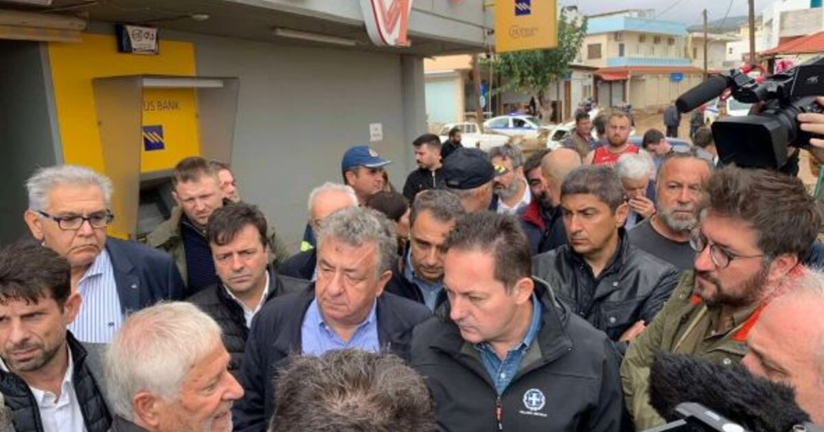 Στις πληγείσες περιοχές έφτασε το πρωί, το κυβερνητικό κλιμάκιο αποτελούμενο από τον αναπληρωτή ΥΠΕΣ, Στέλιο Πέτσα, τον Υφυπουργό στον Πρωθυπουργό αρμόδιο για θέματα φυσικών καταστροφών, Χρήστο Τριαντόπουλο και τον Γενικό Γραμματέα Χωρικού Σχεδιασμού και Αστικού Περιβάλλοντος, Ευθύμιο Μπακογιάννη, με τη συμμετοχή του Γενικού Γραμματέα Πολιτικής Προστασίας, Βασίλη Παπαγεωργίου, της Γενικής Γραμματέως Αγροτικής Ανάπτυξης και Τροφίμων, Χριστιάνας Καλογήρου, του Γενικού Γραμματέα Χωρικού Σχεδιασμού και Αστικού Περιβάλλοντος, Ευθύμιου Μπακογιάννη, και της Γενικής Γραμματέως Υποδομών, Μαρίας – Έλλης Γεράρδη.