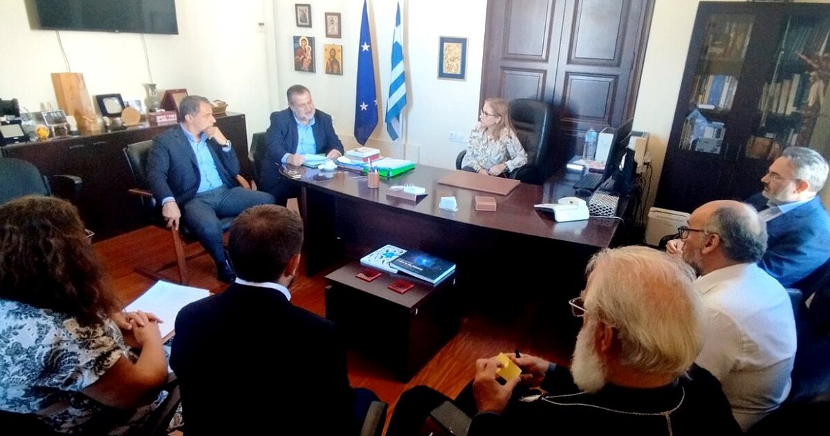 Δύο σημαντικά ζητήματα για το Δήμο έθεσε ο Δήμαρχος Μινώα Πεδιάδας Βασίλης Κεγκέρογλου στον Γενικό Γραμματέα Χωρικού Σχεδιασμού και Αστικού Περιβάλλοντος του Υπουργείου Περιβάλλοντος και Ενέργειας, Ευθύμη Μπακογιάννη στο πλαίσιο συνάντησης που είχαν στα Γραφεία της Αποκεντρωμένης Διοίκησης Κρήτης, παρουσία της Γραμματέως Μαρίας Κοζυράκη, του Βουλευτή Ηρακλείου της ΝΔ Μάξιμου Σενετάκη, του Σεβασμιώτατου Μητροπολίτη Αρκαλοχωρίου, Καστελλίου και Βιάννου κ.κ. Ανδρέα, μελών του Δ.Σ. του Συλλόγου Σεισμοπλήκτων «Η Ελπίδα» και της Αναπληρώτριας Τμηματάρχη της Υπηρεσίας Δόμησης Δήμου Μινώα Πεδιάδας, Ειρήνης Βουμβουλάκη.