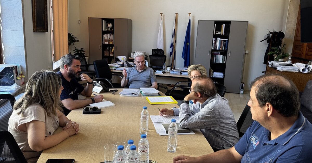 Συνεχίζοντας την προετοιμασία για κρίσιμα έργα πολιτικής προστασίας και άρδευσης, ο Δήμαρχος Ηρακλείου Αλέξης Καλοκαιρινός συγκάλεσε συνάντηση εργασίας στη Λότζια, με την συμμετοχή του Αντιδημάρχου Τεχνικών Υποδομών και Βιώσιμης Κινητικότητας Γιώργου Σισαμάκη, της Γενικής Γραμματέως Μαρίας Σκραφνάκη, του Διευθυντή Έργων της Περιφέρειας Κρήτης Γιώργου Αγαπάκη, της προϊσταμένης Διεύθυνσης Τεχνικών Έργων Π.Ε. Ηρακλείου Χαράς Τριαματάκη και του Ειδικού Συμβούλου Σπύρου Δοκιανάκη.