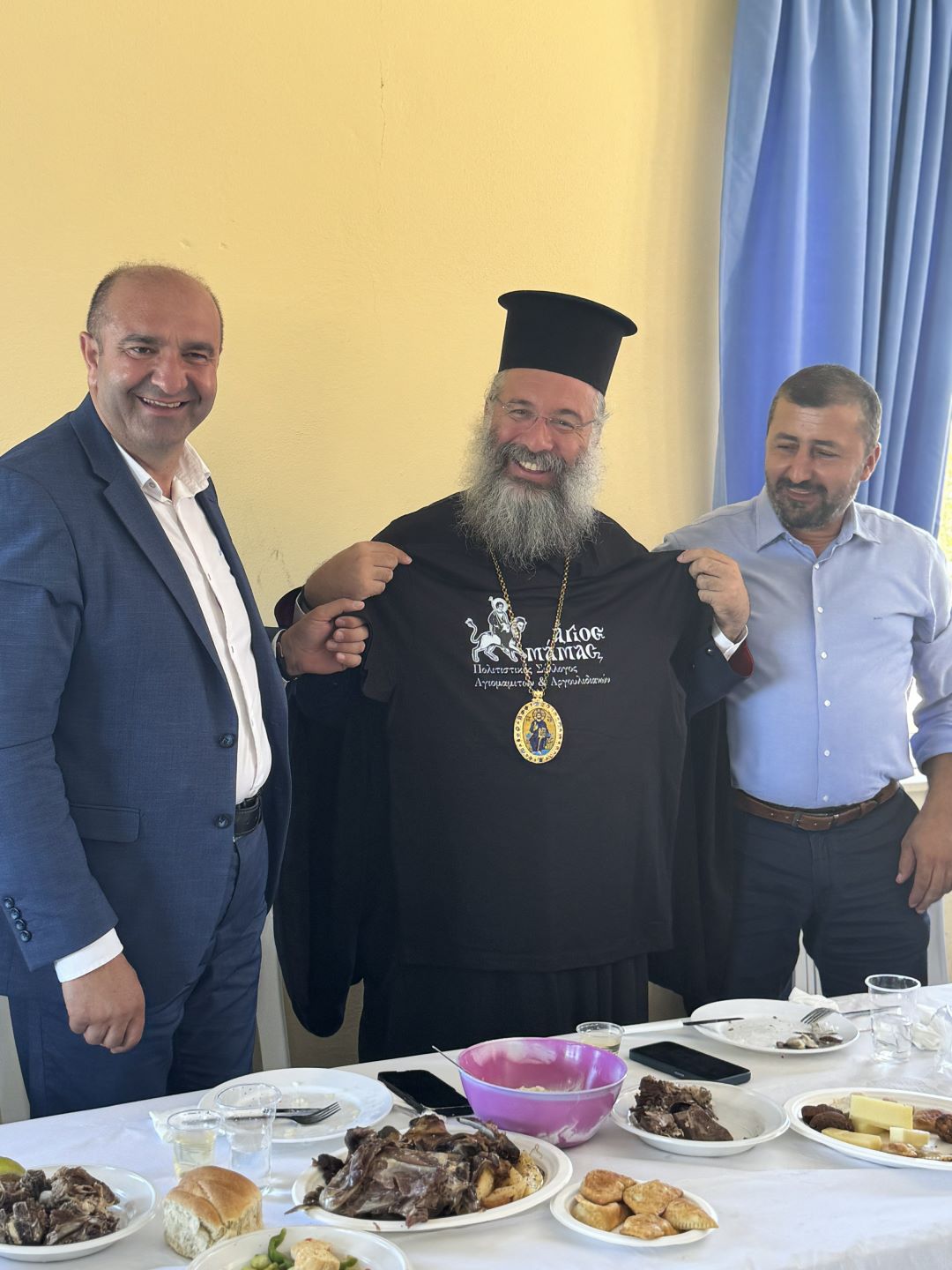 Στην αίθουσα του Πολιτιστικού Συλλόγου προσφέρθηκε πλούσια και αβραμιαία φιλοξενία, την οποία προετοίμασαν όλοι οι άνθρωποι του χωριού για τους περισσότερους από 500 προσκυνητές.