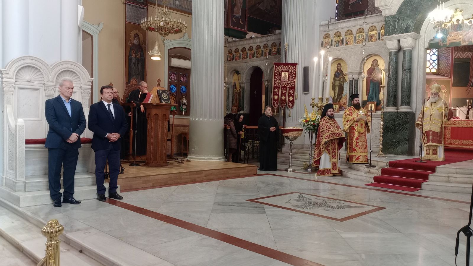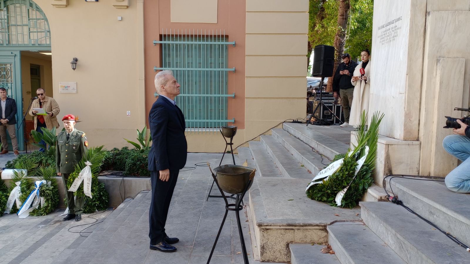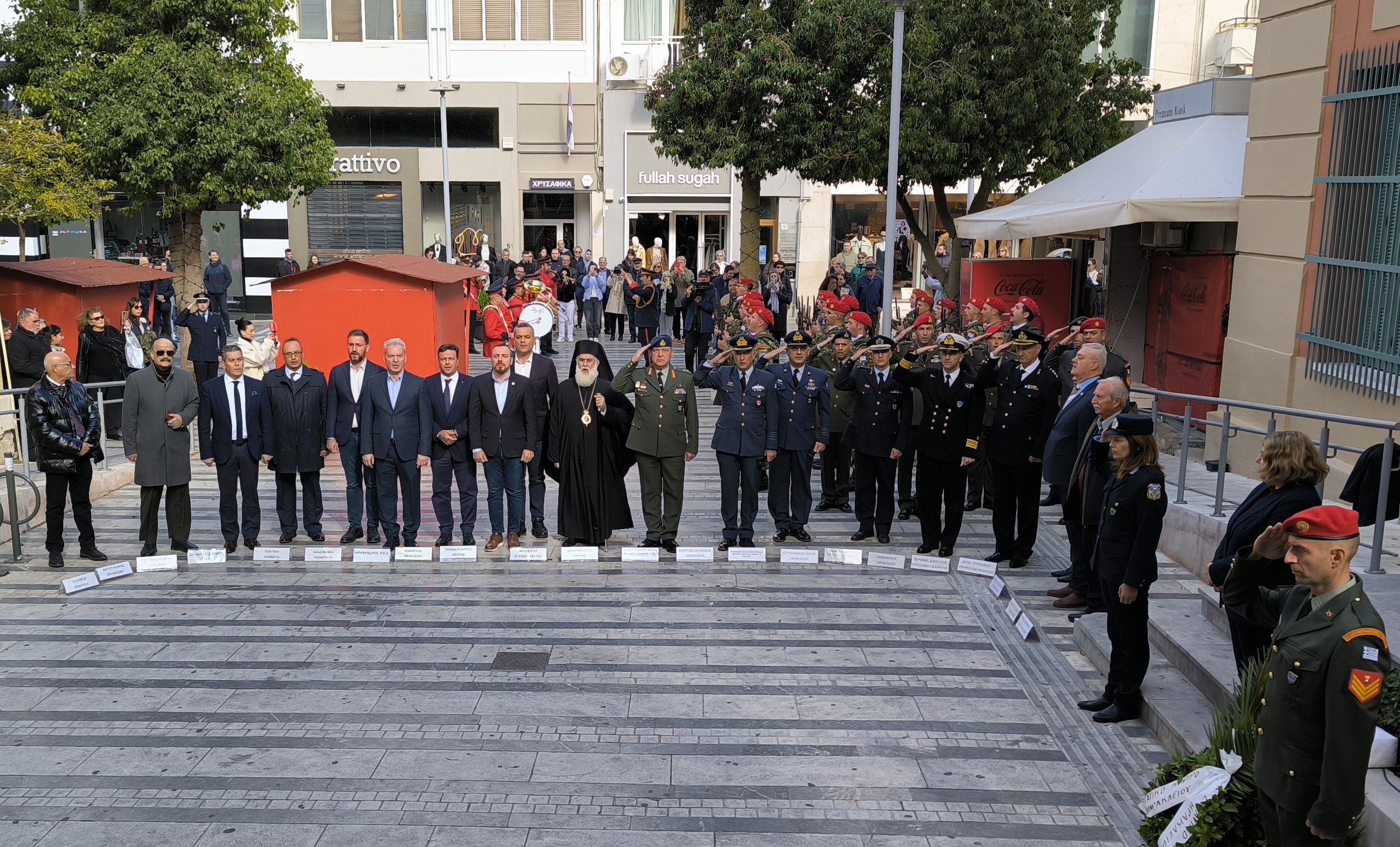 Την επιμνημόσυνη δέηση τέλεσε ο Θεοφιλέστατος Επίσκοπος Κνωσού κ. Μεθόδιος Βερνιδάκης, ενώ στεφάνια κατέθεσαν οι βουλευτές Ηρακλείου Φραγκίσκος Παρασύρης, Χάρης Μαμουλάκης, ο Αντιπεριφερειάρχης Ηρακλείου Νίκος Συριγωνάκης, ο Δήμαρχος Ηρακλείου Αλέξης Καλοκαιρινός, ο Αντιπρόεδρος της ΠΕΔ Κρήτης Μενέλαος Μποκέας, εκπρόσωποι στρατιωτικών αρχών, σωμάτων ασφαλείας, κομμάτων, οργανώσεων αποστράτων και φορέων.