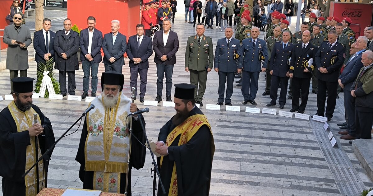 Νωρίτερα στον Ιερό Μητροπολιτικό Ναό του Αγ. Μηνά τελέστηκε επίσημη Δοξολογία ενώ ακολούθησε ομιλία για την Εθνική Αντίσταση από τον κ. Παναγιώτη Ασημακόπουλο, καθηγητή Θεολόγο στο Πρότυπο Γενικό Λύκειο Ηρακλείου.