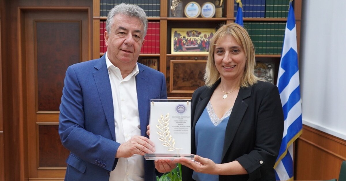 Τιμητική πλακέτα για την προσφορά του στον αθλητισμό και ειδικά στο άθλημα της πάλης, παρέδωσε σήμερα στον Περιφερειάρχη Κρήτης Σταύρο Αρναουτάκη, η Αναπληρώτρια Γραμματέας της Ελληνικής Ομοσπονδίας Πάλης Αντωνία Παπαδάκη.