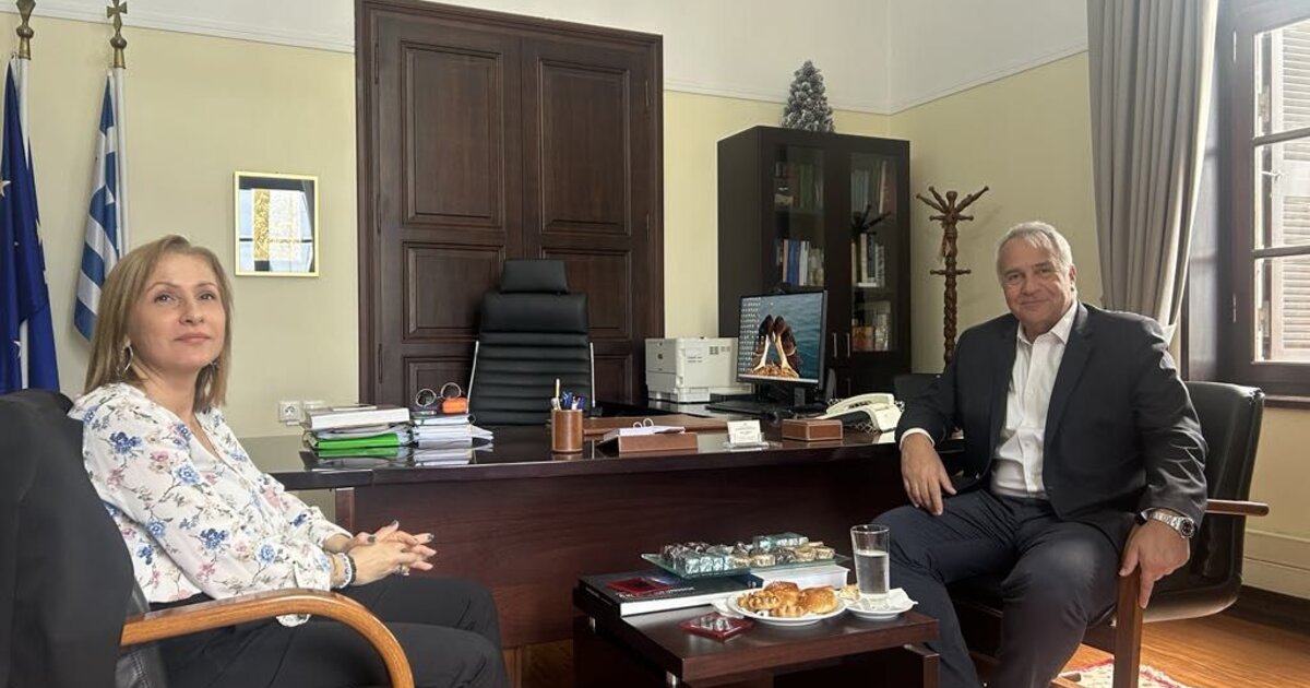 Με τη Γραμματέα της Αποκεντρωμένης Διοίκηση Κρήτης Μαρία Κοζυράκη συναντήθηκε ο Υπουργός Μετανάστευσης και Ασύλου Μάκης Βορίδης, ο οποίος βρέθηκε σήμερα στο Ηράκλειο και συζήτησαν θέματα αρμοδιότητας του Υπουργείου που αφορούν στην Κρήτη.