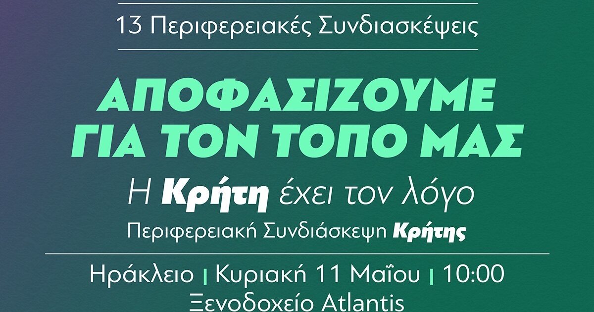 Την Κυριακή 11 Μαΐου 2025 πραγματοποιείται η Περιφερειακή Συνδιάσκεψη του ΠΑΣΟΚ-Κινήματος Αλλαγής στο Ηράκλειο στο ξενοδοχείο Ατλαντίς.