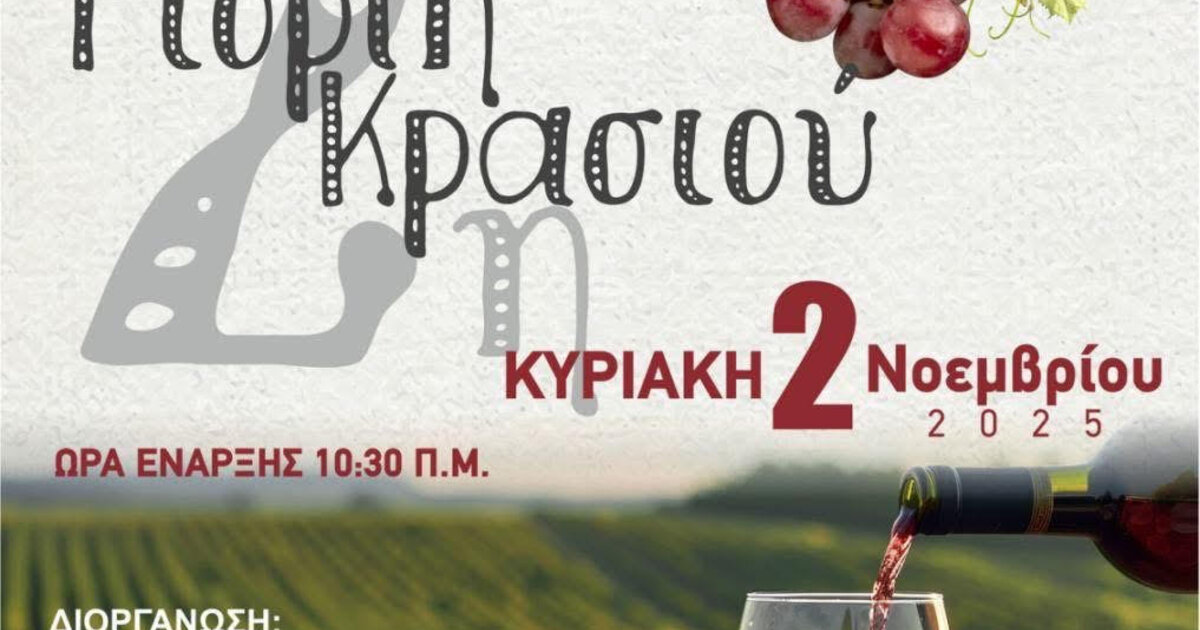 Αύριο, Κυριακή 2 Νοεμβρίου, πραγματοποιείται στην Έμπαρο του Δήμου Βιάννου η 2η Γιορτή Κρασιού «Από την Έμπαρο κρασί…», μια εκδήλωση που συνδυάζει την πλούσια οινική παράδοση της περιοχής με τη μουσική, τη γαστρονομία και την τοπική κουλτούρα.