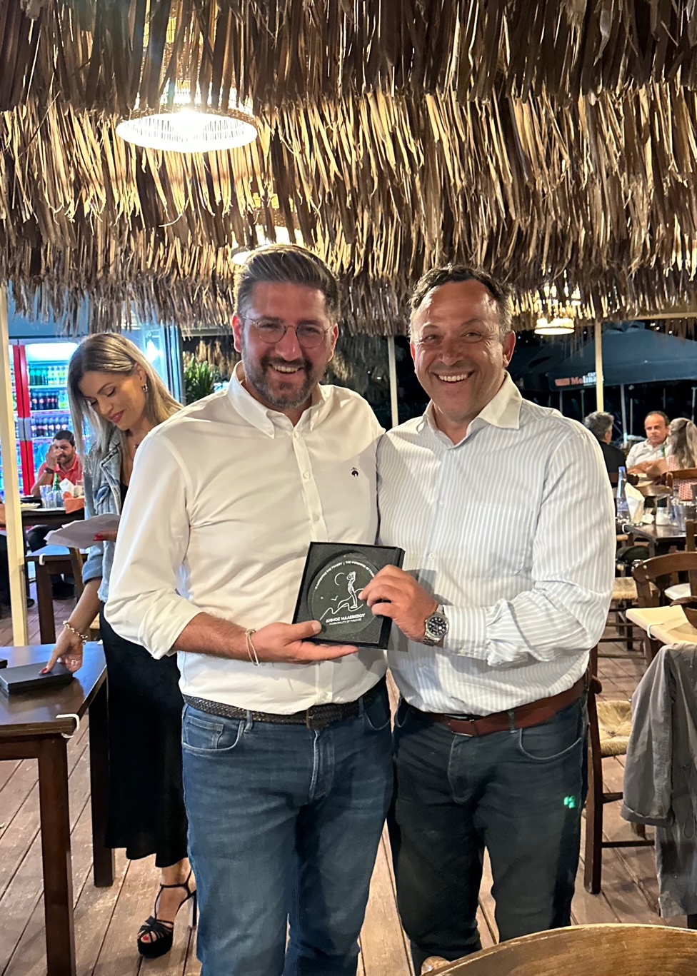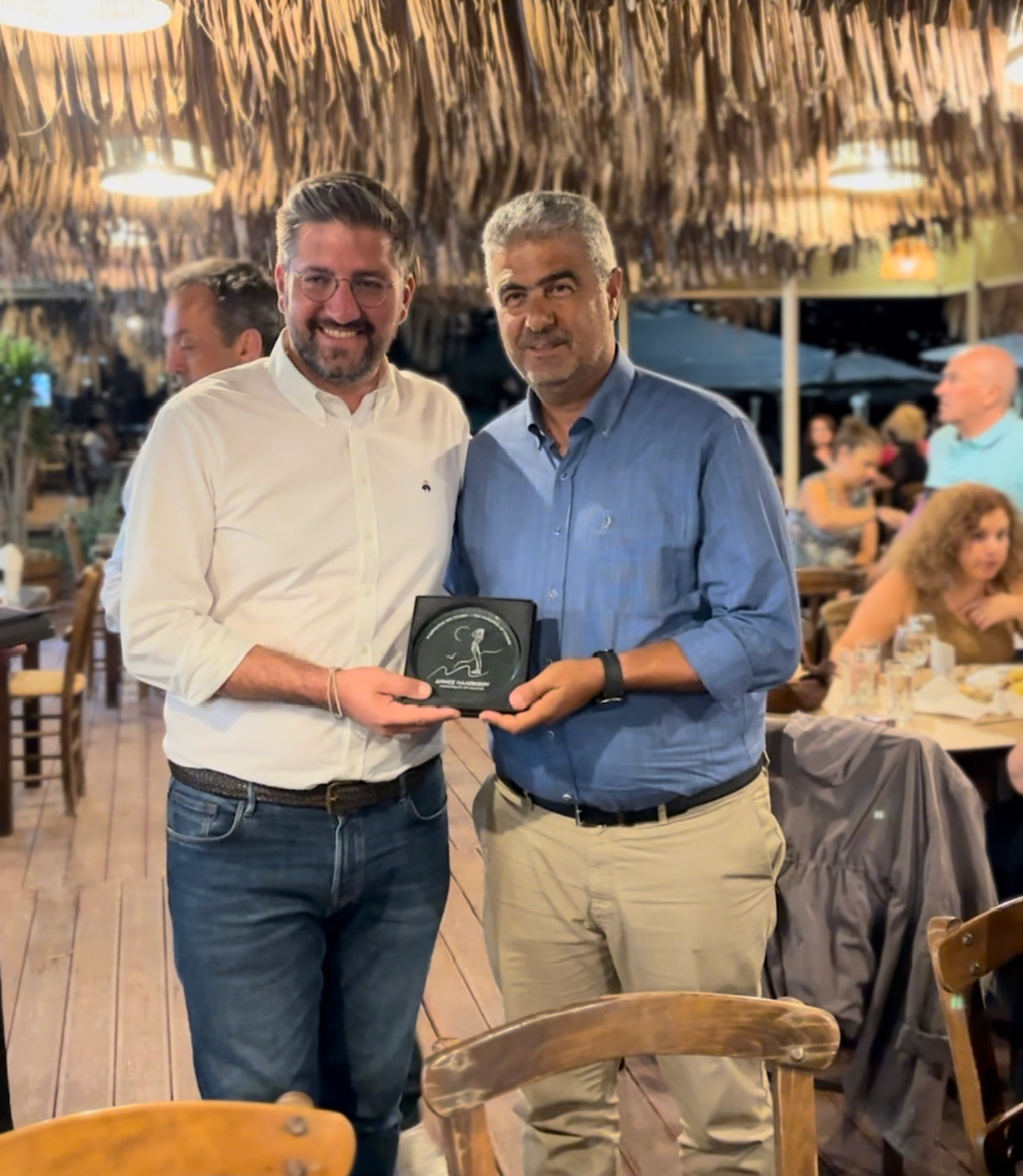 Το Δήμαρχο Μαλεβιζίου Μενέλαο Μποκέα τίμησε ο Γραμματέας της Διεθνούς Επιτροπής Μεσογειακών Αγώνων Ιάκωβος Φιλιππούσης για την συμβολή του στους 3ους Παράκτιους Μεσογειακούς Αγώνες «Ηράκλειο 2023» στη διάρκεια του δείπνου που παρέθεσε ο Δήμος Μαλεβιζίου στην Οργανωτική Επιτροπή των Αγώνων.