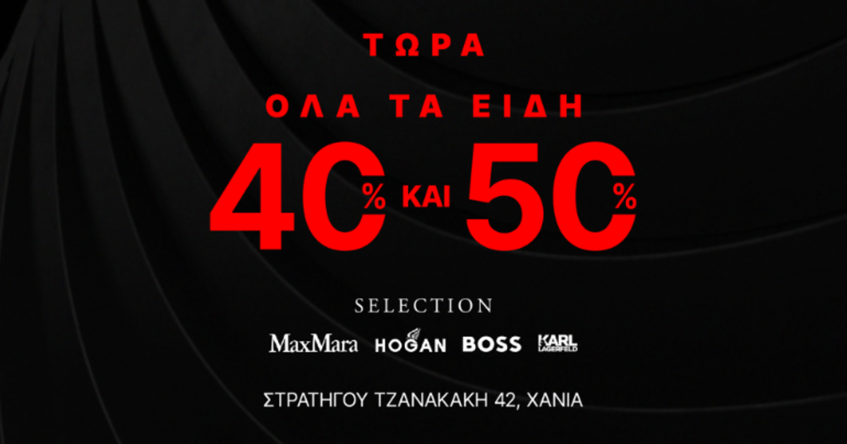 Τώρα όλα τα είδη 40% και 50% OFF!