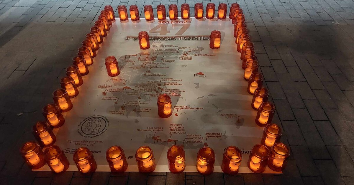 47 κεριά άναψαν μπροστά στην Βασιλική του Αγίου Μάρκου, στο Ηράκλειο, το απόγευμα του Σαββάτου, με αφορμή την Παγκόσμια Ημέρα εξάλειψης της βίας κατά των γυναικών, όσες και οι γυναίκες που, σύμφωνα με τα επίσημα στοιχεία, έχασαν τη ζωή τους από τον κακοποιητή τους, την τελευταία τριετία στη χώρα μας. Έξι από αυτές τις γυναικοκτονίες καταγράφηκαν στην Κρήτη.