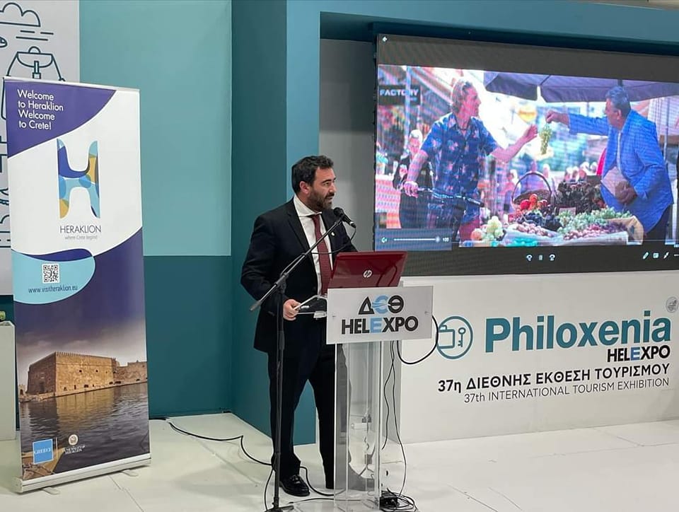 Με μεγάλη επιτυχία ολοκληρώθηκε η παρουσία του Δήμου Ηρακλείου στην Έκθεση Philoxenia 2022 στη Θεσσαλονίκη, όπου ήταν και ο τιμώμενος Δήμος. Από την Παρασκευή 18 έως την Κυριακή 20 Νοεμβρίου η αντιπροσωπεία του Δήμου ανέδειξε με τον καλύτερο δυνατό τρόπο την τουριστική δυναμική της πόλης καθώς και τη συνολική εμπειρία που προσφέρει στον επισκέπτη.