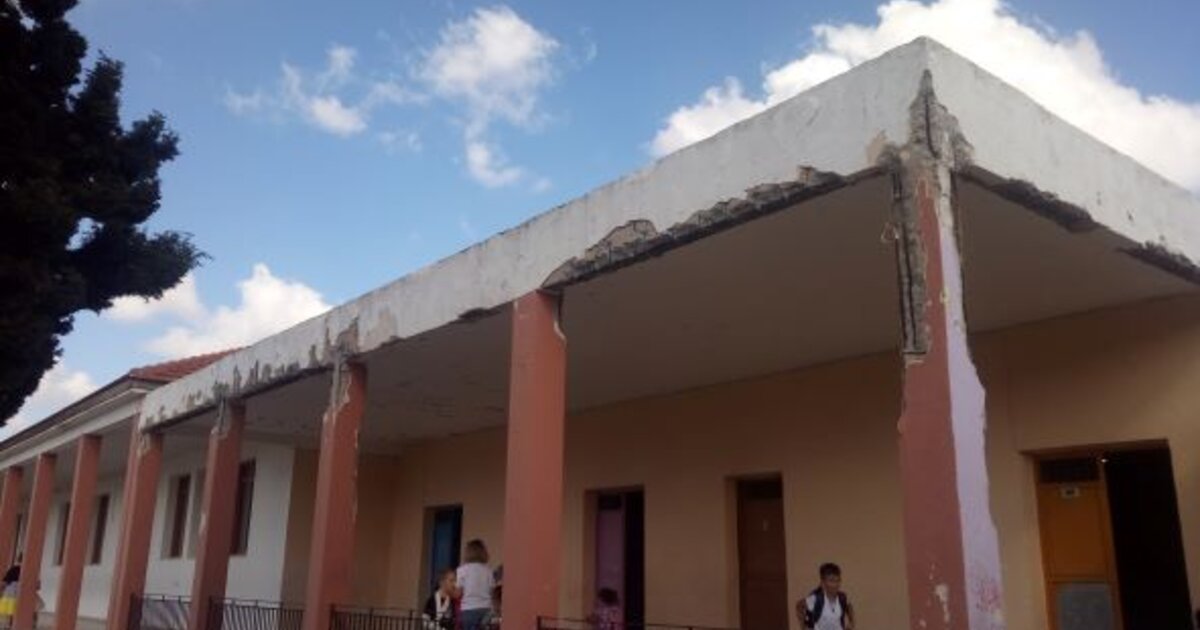 Τραγική η εικόνα στο Δημοτικό Καστελίου - Πεσμένοι σοβάδες και "γυμνοί" στύλοι