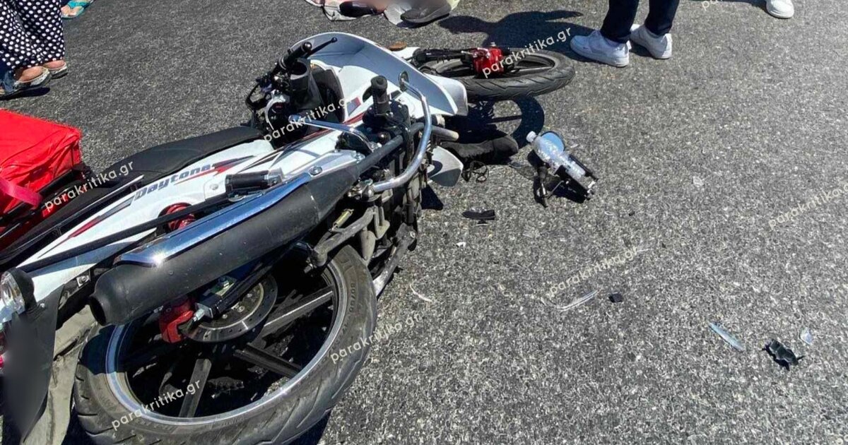 Υπό αδιευκρίνιστες, για την ώρα συνθήκες, αυτοκίνητο συγκρούστηκε με μηχανή, με αποτέλεσμα ο οδηγός της μηχανής να πέσει στο δρόμο και να τραυματιστεί στο πόδι, όπως αναφέρει το parakritika.