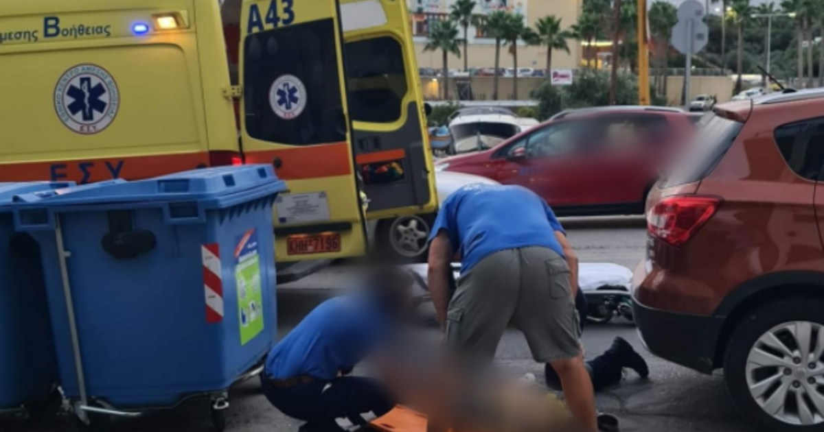 Ασθενοφόρο του ΕΚΑΒ έσπευσε στο σημείο και μετέφερε τον άτυχο αναβάτη στο Νοσοκομείο Χανίων.