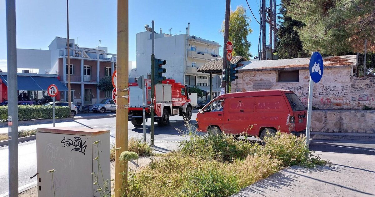 Στο σημείο μεταβαίνει ένα όχημα της πυροσβεστικής με τρεις υπαλλήλους.