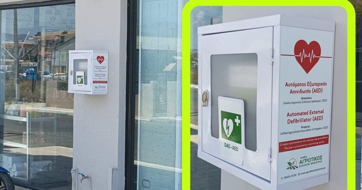 Ο Ενιαίος Αγροτικός Σύλλογος Ιεράπετρας ενημερώνει για την εγκατάσταση 3 νέων Αυτόματων Εξωτερικών Απινιδωτών (ΑΕΑ) σε διάφορα σημεία του Δήμου.