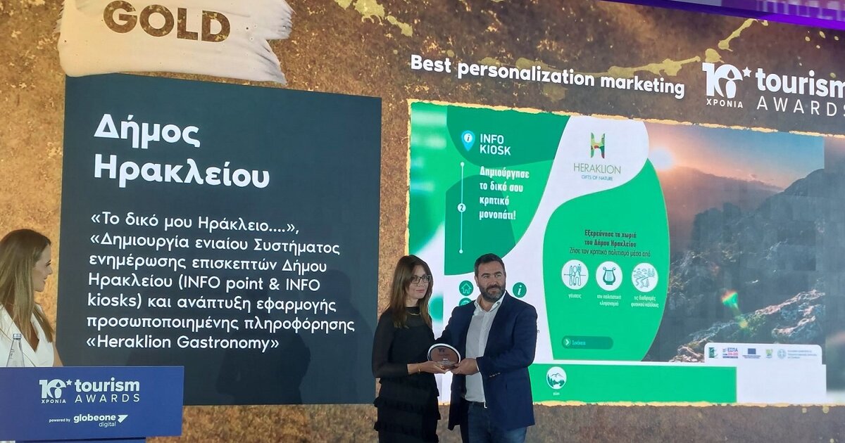 Επιπλέον ο Δήμος Ηρακλείου / Αντιδημαρχία Αναπτυξιακού Προγραμματισμού – Ψηφιακού Μετασχηματισμού, Ολοκληρωμένης Ανάπτυξης Υπαίθρου και Τουρισμού κέρδισε το Χρυσό Βραβείο στην κατηγορία «Καλύτερο προσωποποιημένο μάρκετινγκ» για την δημιουργία ενιαίου συστήματος ενημέρωσης επισκεπτών Δήμου Ηρακλείου (INFO point & INFO kiosks) και ανάπτυξη εφαρμογής προσωποποιημένης πληροφόρησης «Heraklion Gastronomy