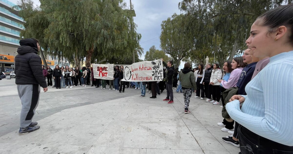 Πορεία και δρώμενα από τους μαθητές του Καλλιτεχνικού Σχολείου Ηρακλείου - Διεκδικούν καθηγητές, εξοπλισμό, μετακίνηση από και προς το σχολείο τους
