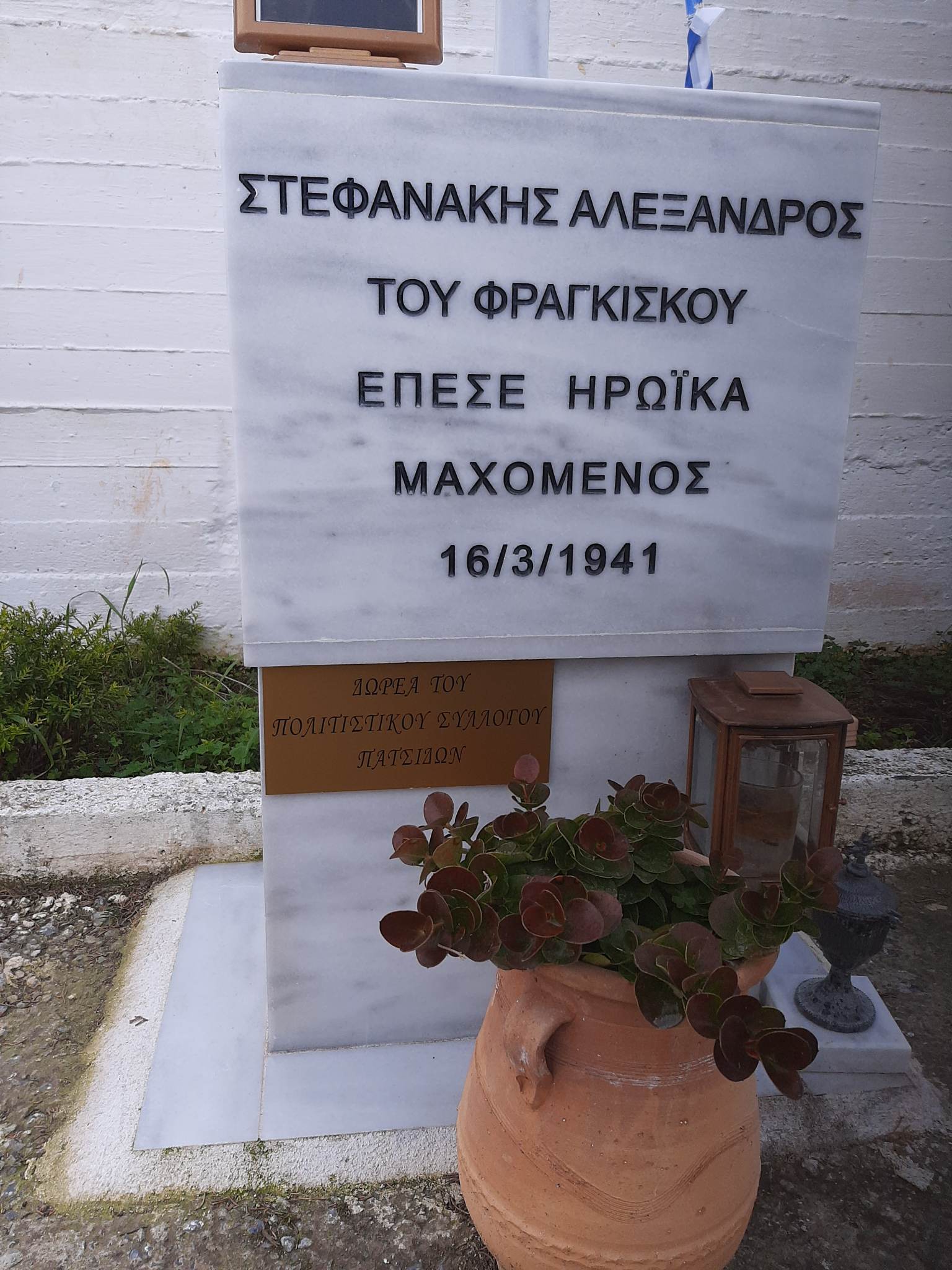 Την Κυριακή 19 Μαρτίου και ώρα 10.30 στο κοιμητήριο Πατσίδων ο Πολιτιστικός Σύλλογος θα πραγματοποιήσει τρισάγιο και κατάθεση στεφάνου στο μνημείο του Αλέξανδρου Στεφανάκη.