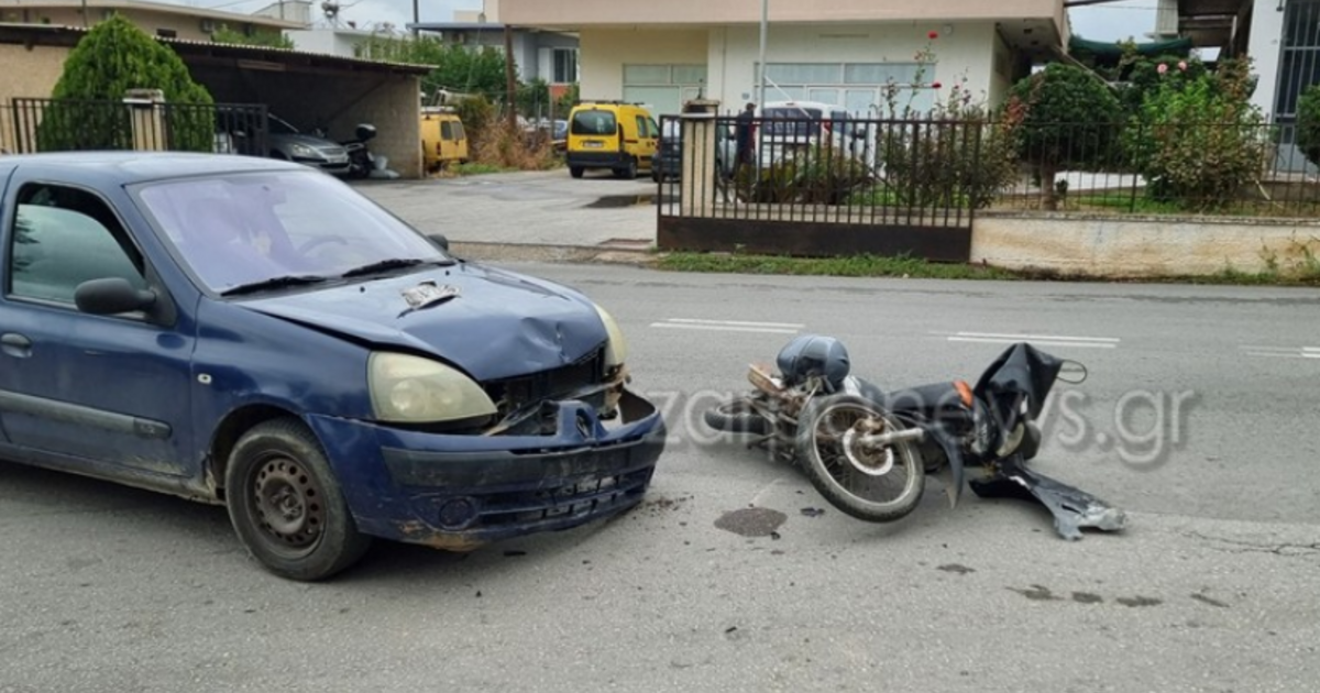 Από τη σύγκρουση τραυματίστηκε ελαφρά ο οδηγός της μηχανής.