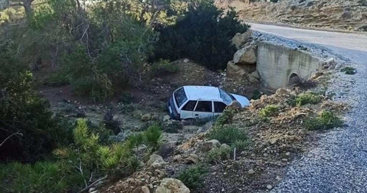 Ένα ΙΧ αυτοκίνητο, που οδηγούσε 40χρονος κάτοικος του νησιού τα τελευταία χρόνια, ξέφυγε από την πορεία του και ανετράπη σε ρέμα στην περιοχή κοντά στην εκκλησία του Χριστού και της Παναγίας, όπως φαίνεται στις φωτογραφίες της ΕΡΤ Χανίων.