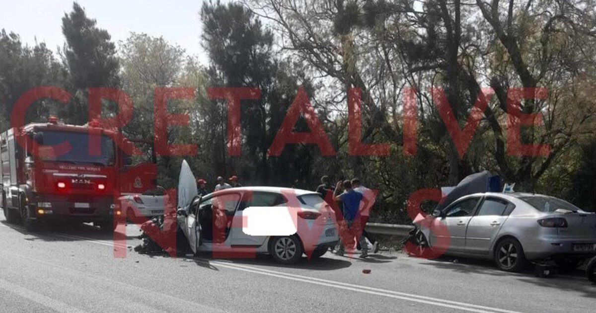 Κάτω από συνθήκες που διερευνώνται συγκρούστηκαν τρία οχήματα, το ένα είχε κατεύθυνση προς το Ηράκλειο και τα άλλα δύο προς τα Χανιά.