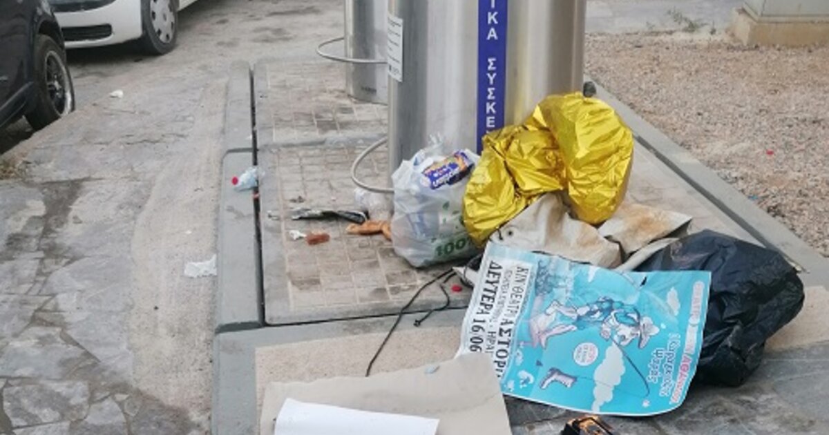 Ξεχείλισαν οι υπόγειοι κάδοι και τα σκουπίδια έφτασαν στο πάρκο!