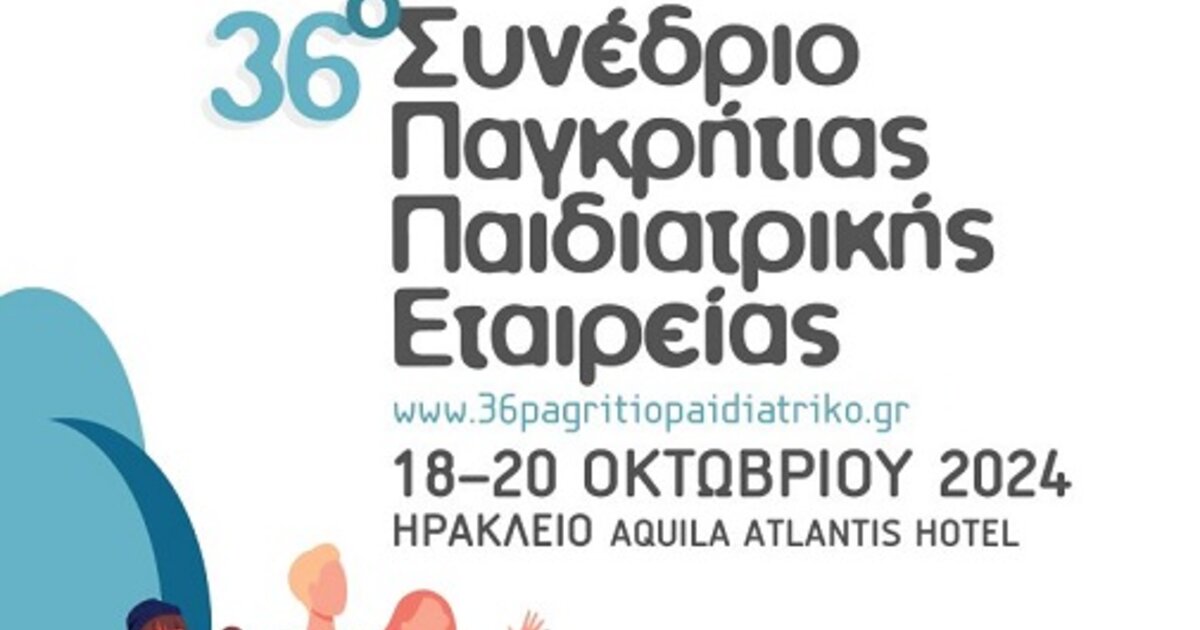 Το 36ο Συνέδριο της Παγκρήτιας Παιδιατρικής Εταιρείας θα λάβει χώρα στο Ηράκλειο, Ξενοδοχείο Aquila Atlantis, 18-20 Οκτωβρίου 2024 και θα πραγματοποιηθεί με την υποστήριξη της Περιφέρειας Κρήτης.