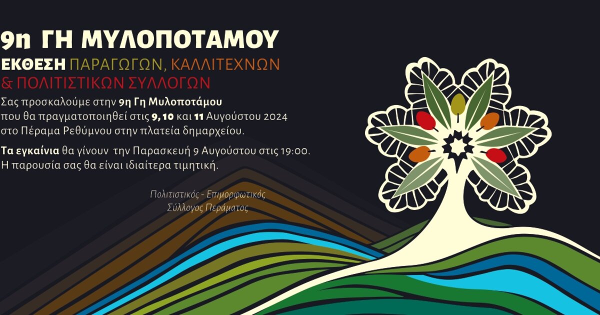 Ο πολιτιστικός επιμορφωτικός σύλλογος Περάματος σε συνεργασία με την Περιφέρεια Κρήτης, το δήμο Μυλοποτάμου και το επιμελητήριο Ρεθύμνου, διοργανώνει στην πλατεία Δημαρχείου στο Πέραμα τις εκδηλώσεις «9η Γη Μυλοποτάμου.