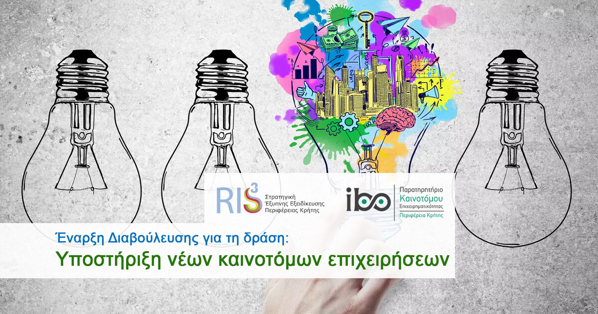 Σας καλούμε να συμμετέχετε στη διαδικασία διαβούλευσης με στόχο την διαμόρφωση του αντικειμένου της σχετικής προκήρυξης. Αποτυπώστε την πρόταση σας συμπληρώνοντας τη φόρμα συμμετοχής στην διαδικασία διαβούλευσης, στο σύνδεσμο https://ibo.crete.gov.gr/dea-new-business/