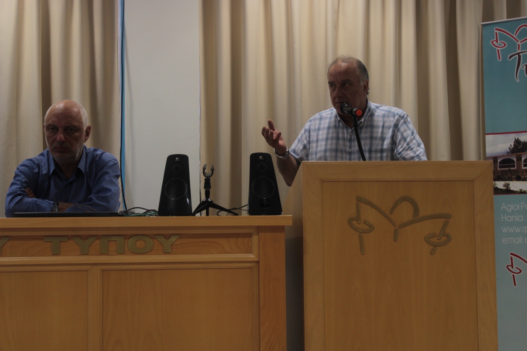 Ακολούθησαν εισηγήσεις από: τον πρόεδρο του Εθνικού Δρυμού Σαμαριάς και Ερευνητή στο Μουσείο Φυσικής Ιστορίας Κρήτης, Πέτρο Λυμπεράκη, τη δικηγόρο και συντονίστρια του Παρατηρητηρίου Περιβαλλοντικού Δικαίου, Μαρία Μανιαδάκη και τον χημικό μηχανικό, Γιάννη Βουρδουμπά.