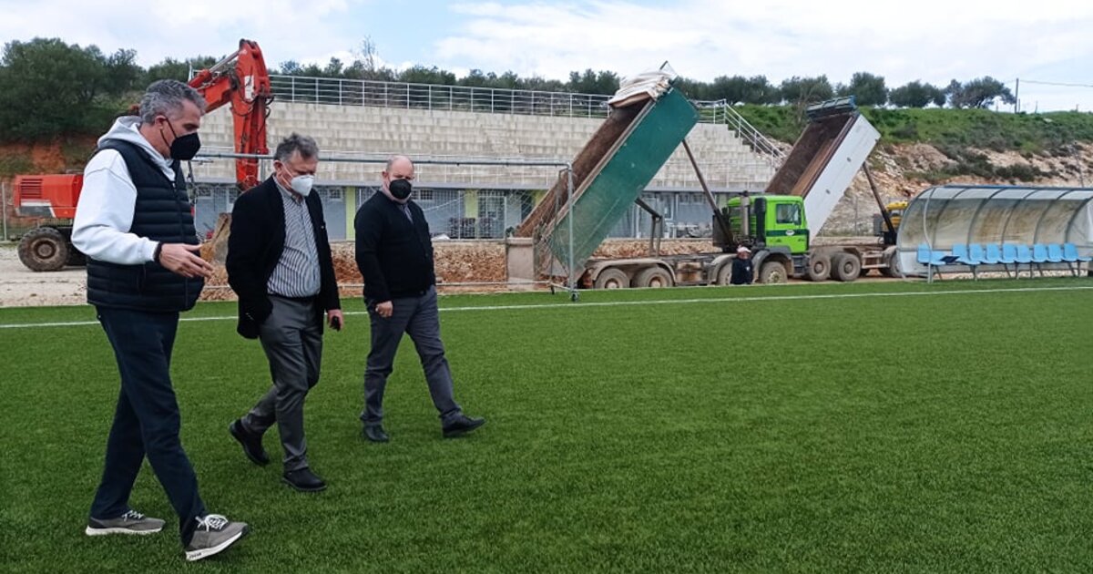 Αυτοψία στις εργασίες διαμόρφωσης του περιβάλλοντος χώρου του Δημοτικού Σταδίου Αρκαλοχωρίου που ξεκίνησαν τις προηγούμενες ημέρες, πραγματοποίησε ο Δήμαρχος Μινώα Πεδιάδας Μανώλης Φραγκάκης, συνοδευόμενος από τον Πρόεδρο του Δημοτικού Οργανισμού Πολιτισμού, Αθλητισμού και Περιβάλλοντος (ΔΟΠΑΠ) Αδάμ Δαμιανάκη.