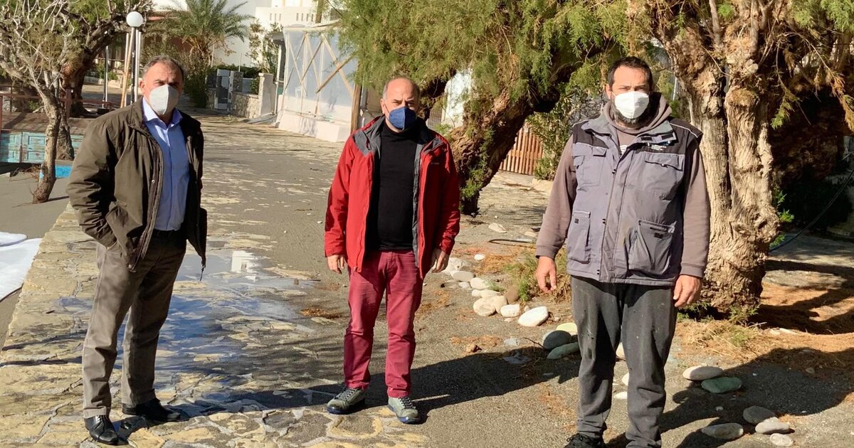Επιτόπια αυτοψία του Δημάρχου Ιεράπετρας, κ. Θεοδόση Καλαντζάκη, του Αρμόδιου Αντιδημάρχου, κ. Εμμανουήλ Βρυγιωνάκη και του Προέδρου της Κοινότητας Σταυροχωρίου, κ. Ιωάννη Ζουμπουλάκη, πραγματοποιήθηκε σε όλο το παραλιακό μέτωπο του Κουτσουρά,