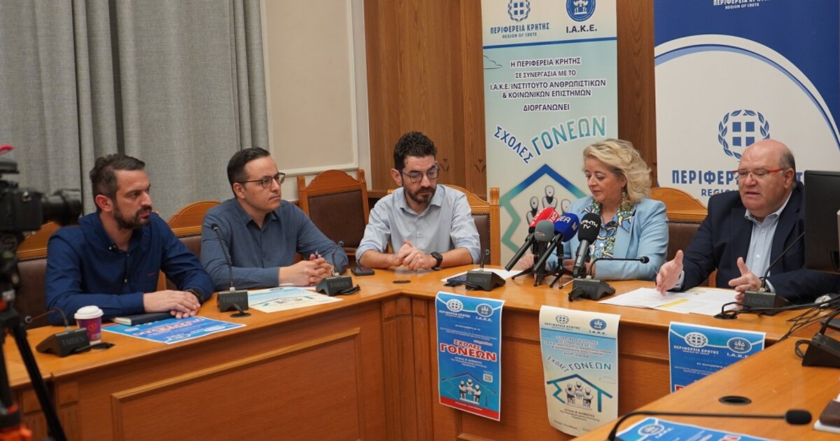 Η Περιφέρεια Κρήτης οργανώνει, σε συνεργασία με το Ινστιτούτο Ανθρωπιστικών και Κοινωνικών Επιστημών, Σχολές Γονέων, πιλοτικά, και στους 8 Δήμους της Περιφερειακής Ενότητας Ηρακλείου.