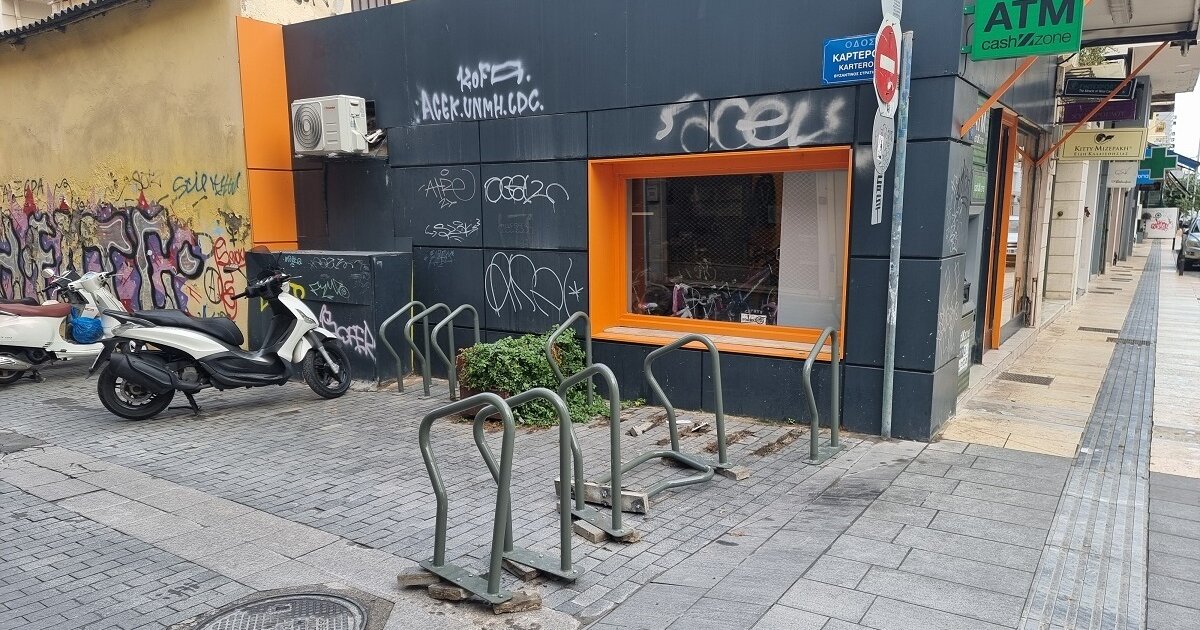 Μπροστά σε ένα θέαμα καταστροφής βρέθηκαν το πρωί της Κυριακής περαστικοί από την οδό Καρτερού. Στην πόλη που θα ήθελε να δει στην πράξη στη βιώσιμη μετακίνηση, ενισχύοντας τη χρήση ποδηλάτου και μέσω χωροθέτησης σημείων στάθμευσης των δίτροχων αυτών, υπάρχουν κι εκείνοι που δεν αντιλαμβάνονται καμία φιλοσοφία και σκεπτικό και αρκούνται στο να καταστρέφουν!