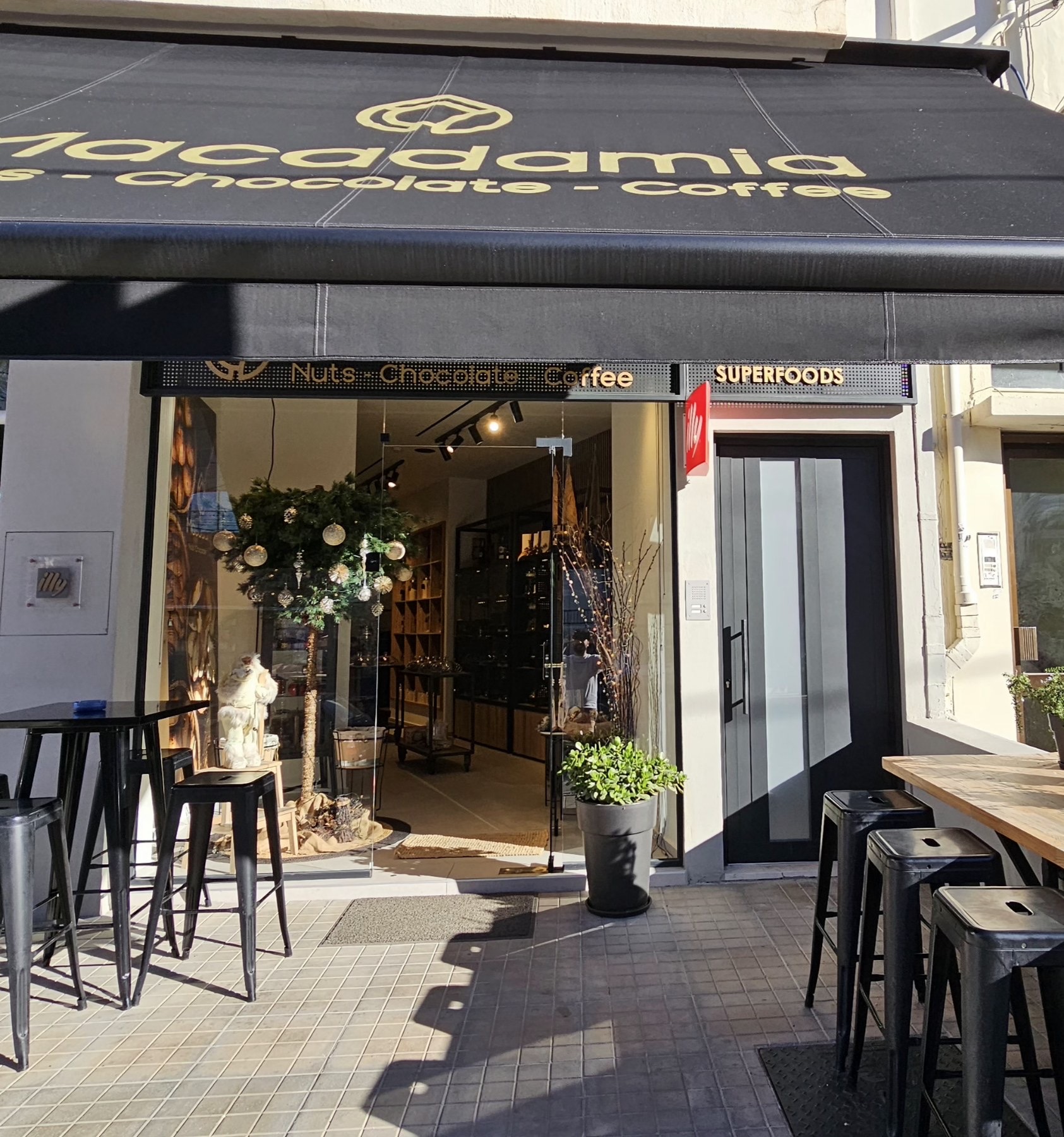 Στο “Macadamia”, στην λεωφόρο Εθνικής Αντιστάσεως 164, θα βρείτε ακόμα κουραμπιέδες με 100% αγνό βούτυρο γάλακτος, χειροποίητα μπλοκ σοκολάτας και μία μεγάλη ποικιλία από σοκολατάκια. Σοκολατάκια μαρόν γλασέ κάστανο, δαμάσκηνο, βύσσινο αλλά και γαλλικές και βέλγικες πραλίνες!