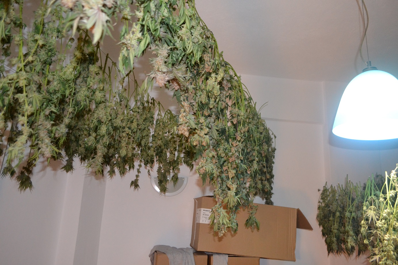 Κατά τη διάρκεια της επιχείρησης εντοπίσθηκαν και ακινητοποιήθηκαν μέσα στο σπίτι οι δύο άνδρες, ενώ βρέθηκαν και δύο ειδικά διαμορφωμένοι χώροι με τεχνικό εξοπλισμό για την καλλιέργεια κάνναβης εσωτερικών χώρων και ακόμα ένα χώρο ειδικά διαμορφωμένο χώρο για αποξηραντήριο.
