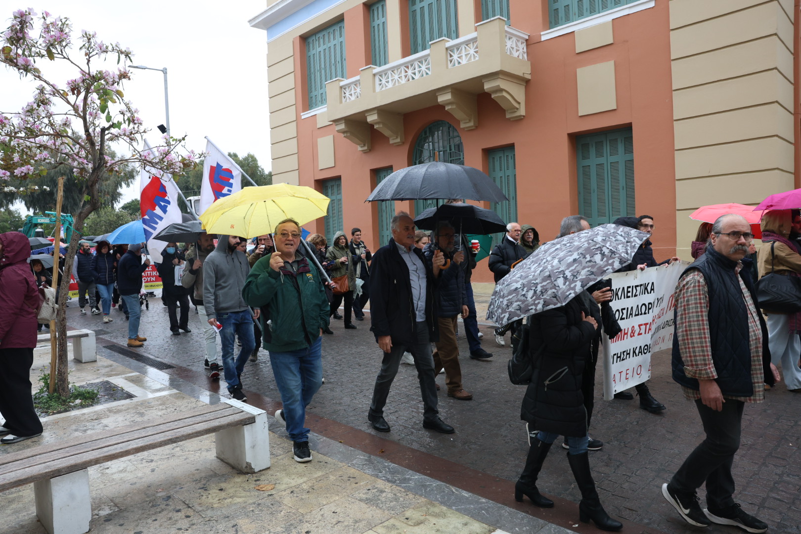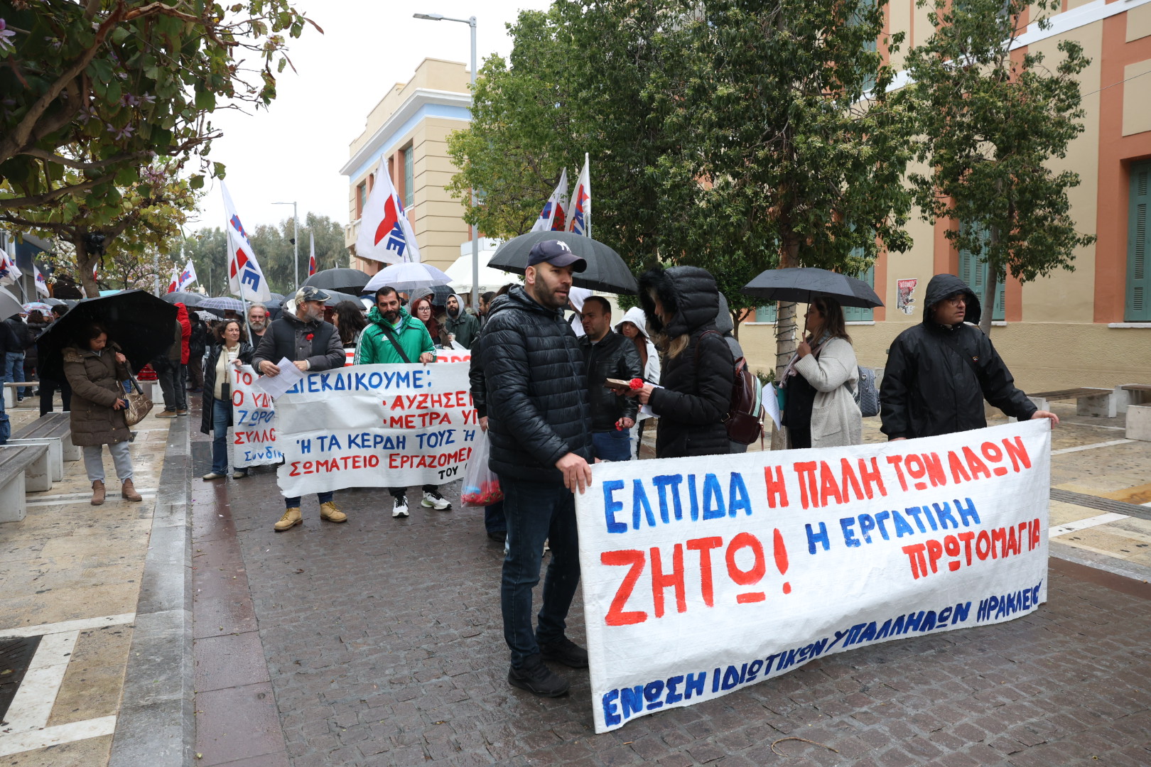 Υπό βροχή οι συγκεντρώσεις για την Πρωτομαγιά στο Ηράκλειο