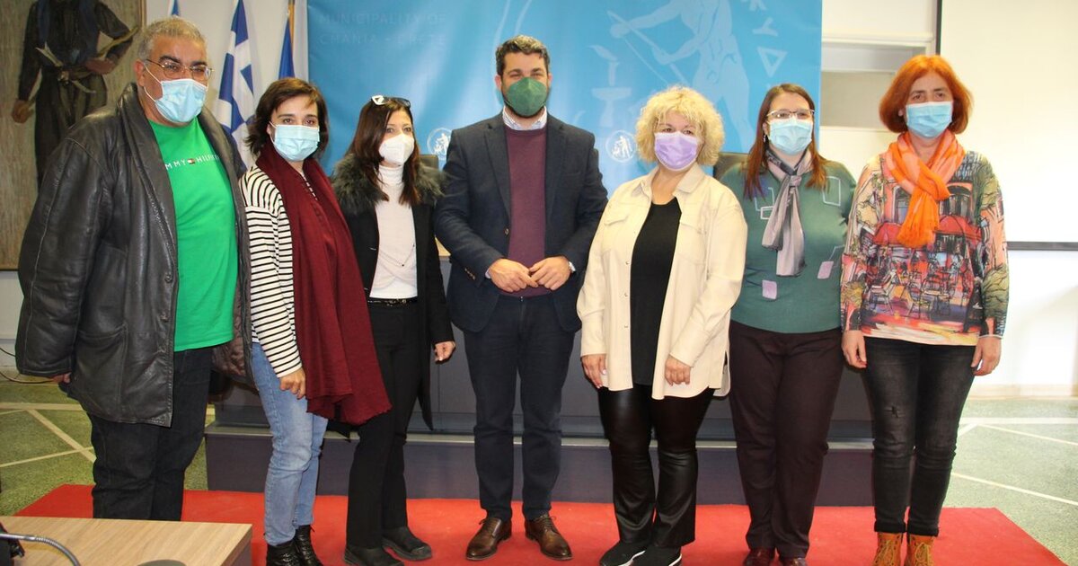 Εκπαιδευτικούς και μαθητές από την Κύπρο, τη Ρουμανία, τη Βουλγαρία, την Πορτογαλία, την Ιταλία και την Ελλάδα, που συμμετέχουν στη δράση «climA: Be the Change», στο πλαίσιο του προγράμματος ERASMUS και βρίσκονται αυτό το διάστημα στα Χανιά, υποδέχτηκαν σήμερα, Πέμπτη 24/3/2022, στο Δημαρχείο, ο Δήμαρχος Χανίων, Παναγιώτης Σημανδηράκης, και ο Αντιδήμαρχος Παιδείας & Πρόεδρος της Δευτεροβάθμιας Σχολικής Επιτροπής του Δήμου, Αντώνης Βαρδάκης. Τα μέλη των ξένων αποστολών συνόδευαν εκπαιδευτικοί του 4ου Γενικού Λυκείου Χανίων.