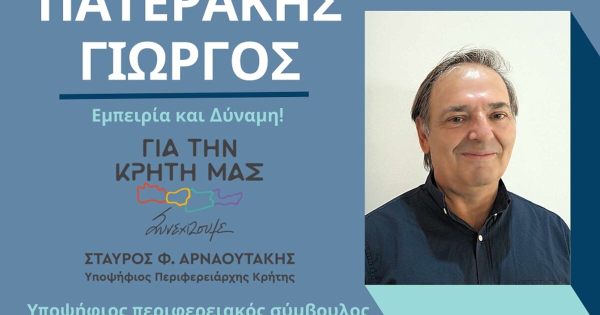 Υποψήφιος με τον Σταύρο Αρναουτάκη θα είναι ο Γιώργος Πατεράκης στις εκλογές του Οκτωβρίου.