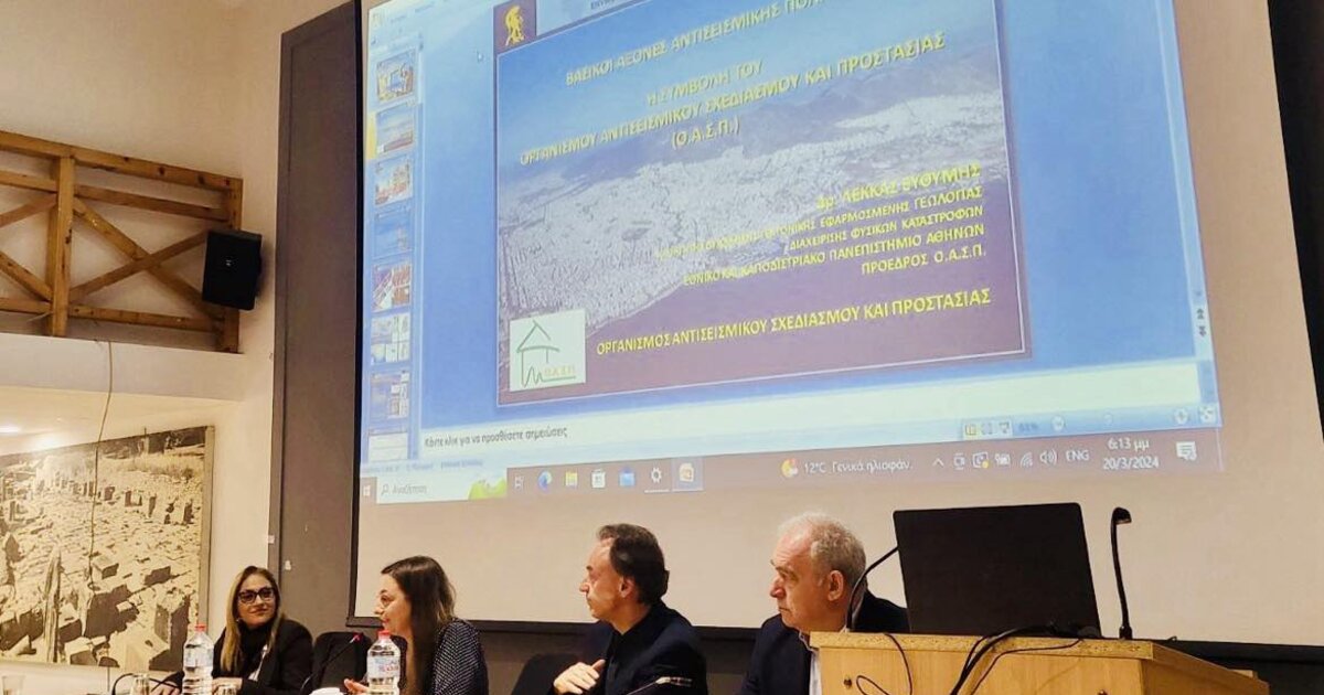 Ο πρόεδρος του ΟΑΣΠ, καθηγητής Δυναμικής Τεκτονικής, Εφαρμοσμένης Γεωλογίας και Διαχείρισης Φυσικών Καταστροφών του Ε.Κ.ΠΑ., Ευθύμιος Λέκκας, έκανε την πρώτη ομιλία του σεμιναρίου "Οι Σεισμοί Τουρκίας - Συρίας τον Φεβρουάριο του 2023: το Επιχειρησιακό, Διασωστικό και Επιστημονικό Έργο της Ελληνικής Αποστολής". Στη συνέχεια, ο Γενικός Διευθυντής του Οργανισμού, Δρ. Βασίλειος Μώκος, έκανε μια εξειδικευμένη εισήγηση σχετικά με τις "Προσωρινές Υποστυλώσεις και Αντιστηρίξεις Σεισμόπληκτων Κτιρίων".