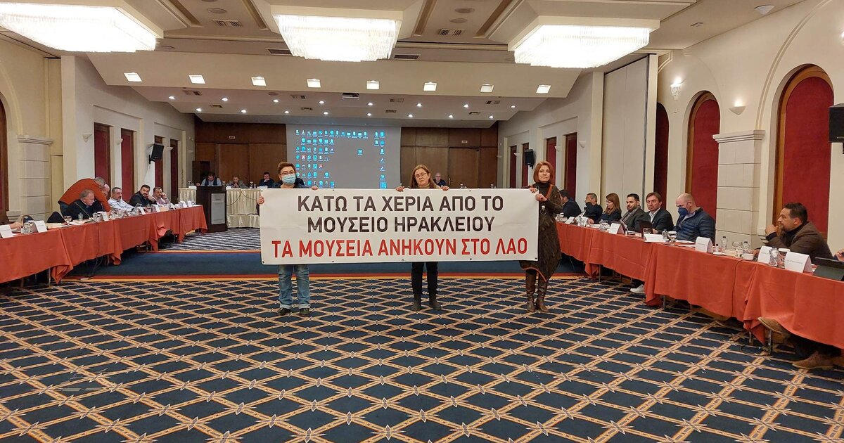 Οι διαμαρτυρόμενοι κατέθεσαν ψήφισμα κατά της "αυτονόμησης" του Μουσείου του Ηρακλείου.