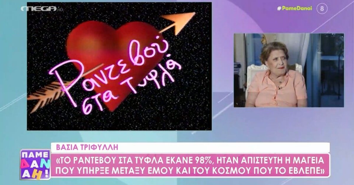 «Το ‘Ραντεβού στα τυφλά’ έκανε 98%, ήταν απίστευτη η μαγεία που υπήρξε μεταξύ εμού και του κόσμου που το έβλεπε, είχαμε έναν αμοιβαίο έρωτα. Δεν ξέρω για ποιον λόγο, θεάρεστο, ο κόσμος το έχει συνδέσει με τη Βάσια Τριφύλλη αυτό. Στον δρόμο μού λέγανε ‘έχεις κανέναν μωρή;’».