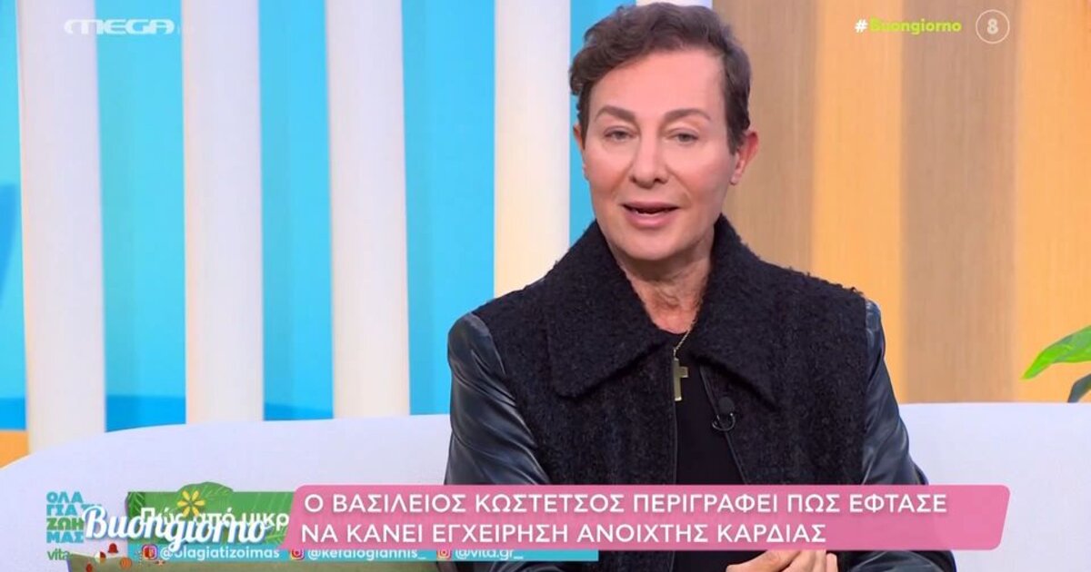Ο Βασίλειος Κωστέτσος βρέθηκε καλεσμένος στην εκπομπή «Όλα για τη ζωή μας» του MEGA που θα προβληθεί την Κυριακή 15 Δεκεμβρίου και αποκάλυψε τη μεγάλη περιπέτεια που πέρασε με την υγεία του όταν μετά από μια αποτυχημένη επέμβαση μεταμόσχευσης μαλλιών κατέληξε να κάνει επέμβαση στην καρδιά.