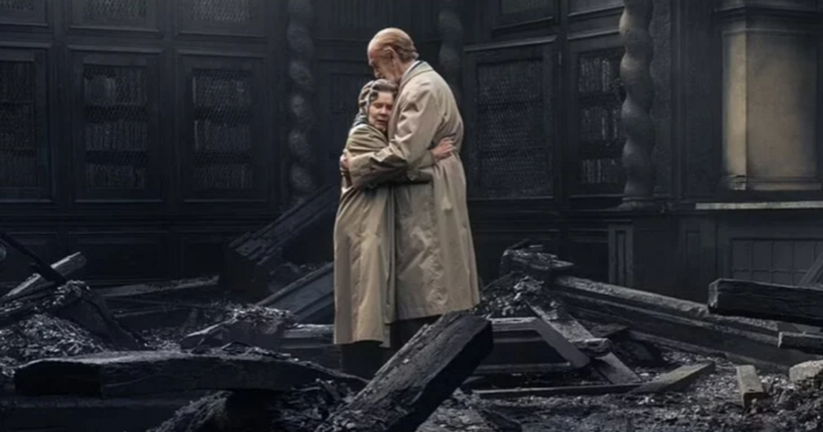 Σε ένα μαύρο σκηνικό, μέσα απανθρακωμένα ερείπια, η συντετριμμένη βασίλισσα Ελισάβετ αγκαλιάζει τον πρίγκιπα Φίλιππο. Αυτή είναι μία από τις πιο έντονα φορτισμένες σκηνές του πέμπτου κύκλου του The Crown.