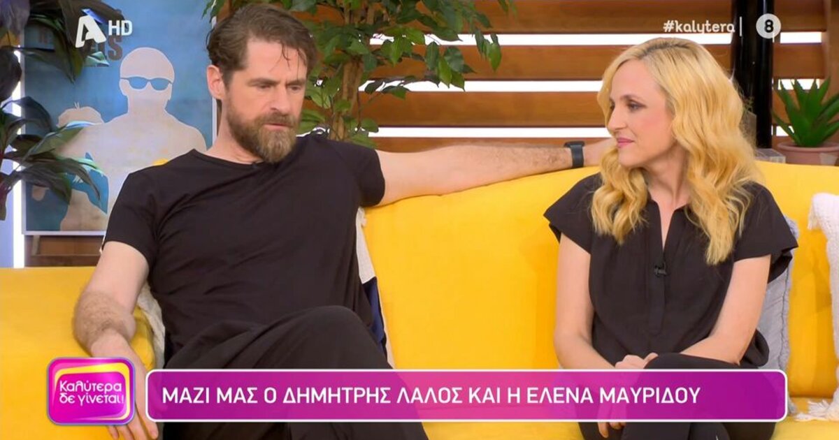 Ο Δημήτρης Λάλος και η Έλενα Μαυρίδου βρέθηκαν καλεσμένοι στο «Καλύτερα Δε Γίνεται» και μίλησαν -μεταξύ άλλων- για την γνωριμία και σχέση τους, τη θεατρική παράσταση «Βάκχες», ενώ αναφέρθηκαν και στους τηλεοπτικούς ρόλους τους στις σειρές «Σασμός» και «Σώσε με».