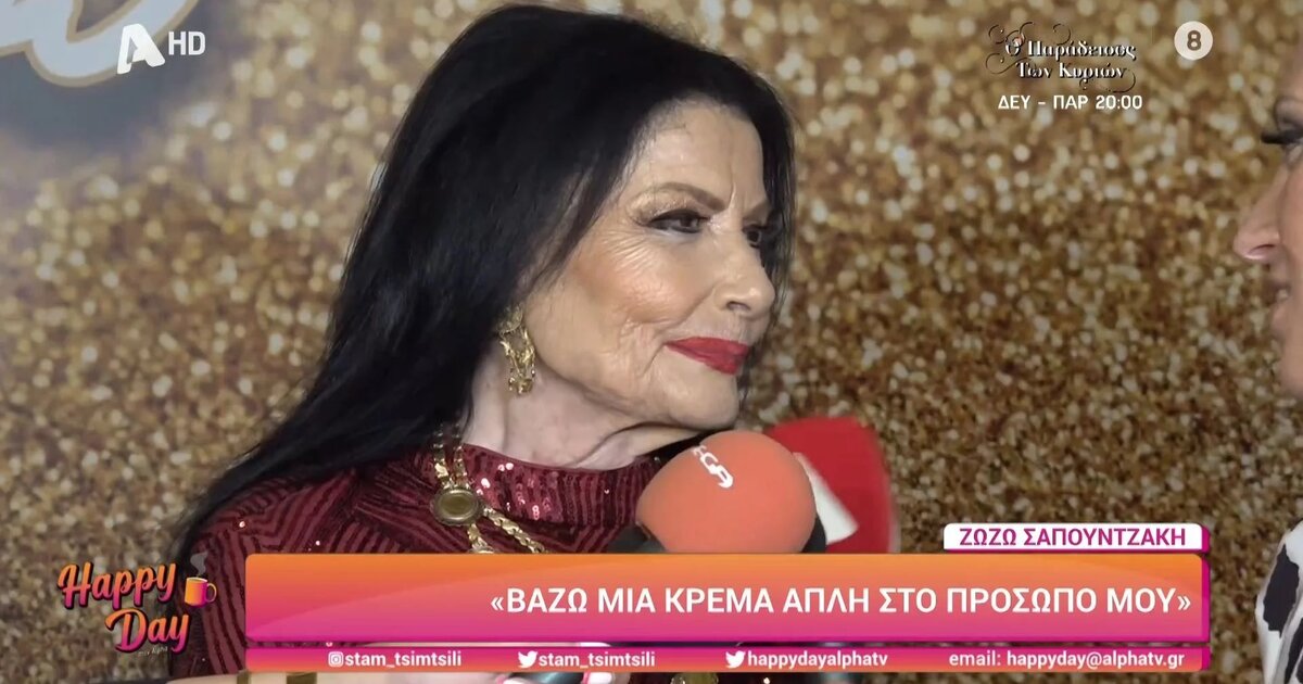«Ευχήθηκα να είμαι γερή και να σβήσω και του χρόνου την άλλη τούρτα. Δεν νομίζω ότι υπάρχει κάποιο μυστικό για την μακροχρόνια σχέση, απλώς μπορούμε να συνεννοηθούμε. Και εγώ δεν έχω καμία σχέση με την δουλειά και την δουλειά του σπιτιού. Στο σπίτι είμαι και νοικοκυρά και κάνω τα πάντα. Είμαστε ένα ζευγάρι πάρα πολύ όμορφο, πολύ αγαπημένοι και εύχομαι μέχρι το τέλος να είμαστε έτσι» δήλωσε αρχικά η Ζωζώ Σαπουντζάκη.