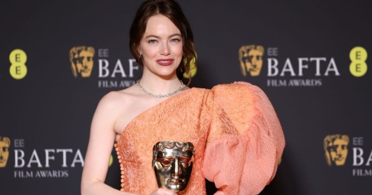 H Έμα Στόουν (Emma Stone) κρατώντας το βραβείο Bafta για την Καλύτερη Γυναικεία Ερμηνεία στη σκηνή του Royal Festival Hall του Λονδίνου, ευχαρίστησε μεταξύ άλλων τη μητέρα της και τον σεναριογράφο της ταινίας «Poor Things» Τόνι ΜακΝαμάρα(Tony McNamara).