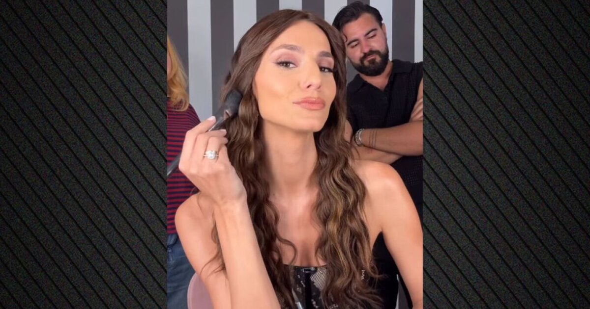 Έτσι, ανάρτησε ένα βίντεο στον προσωπικό της λογαριασμό στο Instagram όπου ποζάρει στον καθρέφτη μαζί με τους συνεργάτες της και ολοκληρώνει το μακιγιάζ της, ενώ τον παράμεσό της στολίζει ένα εντυπωσιακό μονόπετρο δαχτυλίδι.