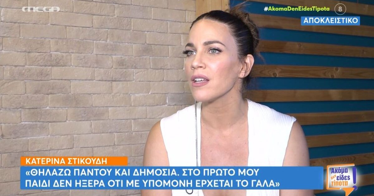 Προβληματιζόμουν μήπως κάτι δεν πήγαινε καλά με εμένα… Τώρα που το ζω δεύτερη φορά δε μετράω πια, δεν έχω το χρονόμετρο, το μωράκι θα τρώει όποτε και όσο θέλει. Χωρίς άγχος. Τη βάπτιση την ετοιμάζουμε για αρχές Σεπτέμβρη» είπε ακόμα η Κατερίνα Στικούδη που δε δίστασε να θηλάσει τον πέντε μηνών γιο της και μπροστά στην κάμερα.